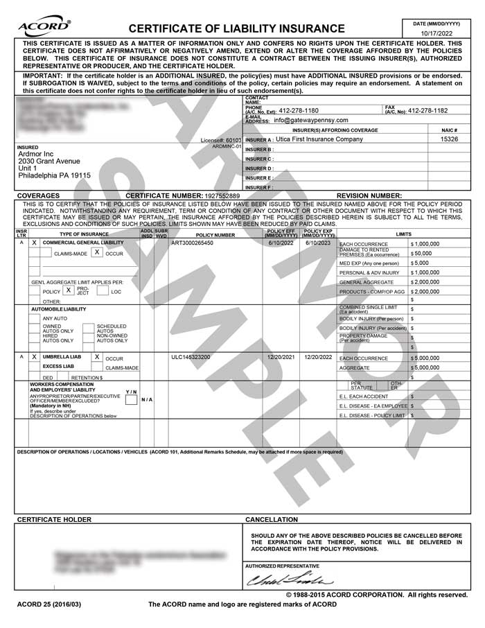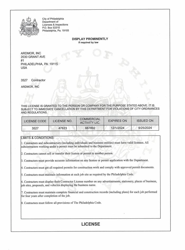 At ARDMOR, we specialize in windows, doors, glass replacement, and repair, offering comprehensive and high-quality services. Founded in 2015, our company is dedicated to becoming true experts and improving the quality of life for our clients. We hold all necessary licenses and insurance, which is essential to ensure the safety and peace of mind of our customers. We take pride in providing reliable and professional service, backed by the necessary certifications and protections for your complete satisfaction.