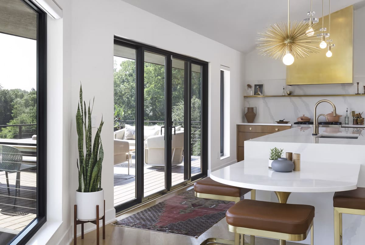 With slim 3″ stiles and rails, the Ultimate Sliding Narrow Profile Door delivers a sleek, modern aesthetic and maximizes natural light. Configurations up to 16′ wide create a striking design element with expansive views.