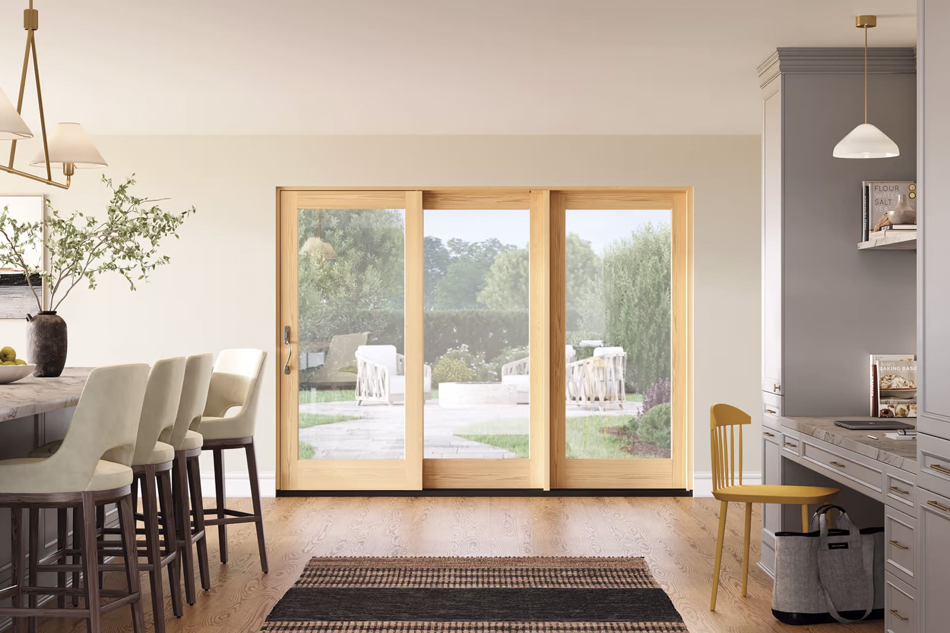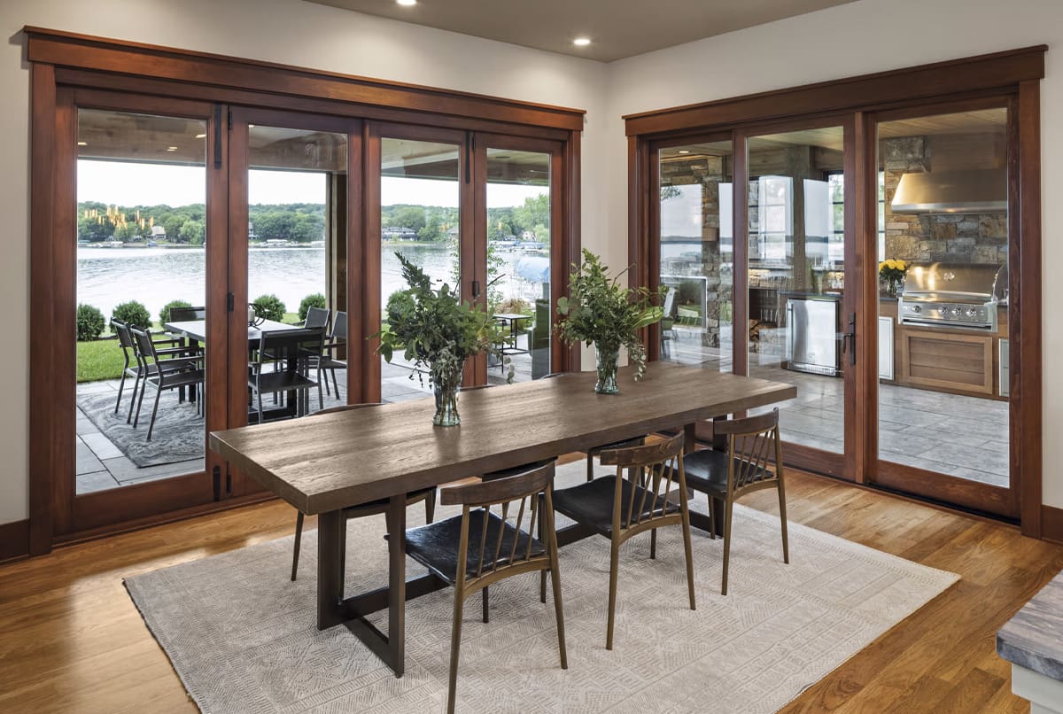 With sleek contemporary lines and expansive glass, the Elevate® Sliding Patio Door enhances views while ensuring smooth operation. A durable Ultrex® fiberglass exterior pairs with a warm wood interior for lasting style and strength.