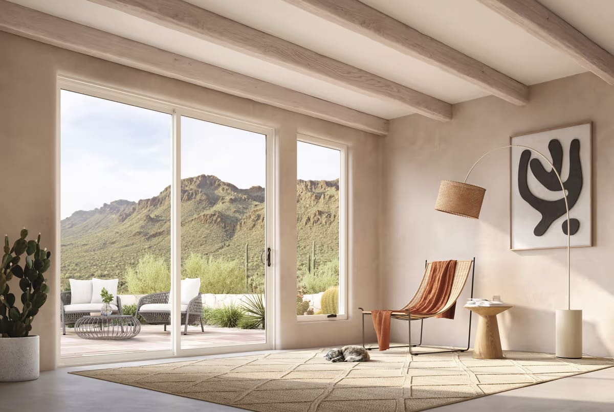 Crafted from durable Ultrex® fiberglass, the Essential® Sliding Patio Door offers clean lines and expansive glass, maximizing views while ensuring effortless operation for years to come.