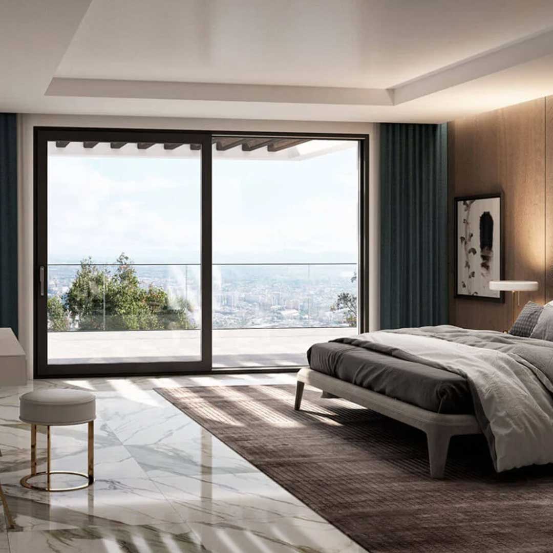 Sliding patio doors with an innovative mechanism assure easy and intuitive operation. The ability to create large structures ensures a wide range of applications. With a minimalist design, you can maximize the glazed surface to provide more natural light within the room. Furthermore, these doors offer superior thermal insulation, helping to maintain a comfortable indoor temperature while reducing energy costs. The sleek frames and expansive glass panels provide unobstructed views of the outdoors, seamlessly integrating your indoor and outdoor living spaces.