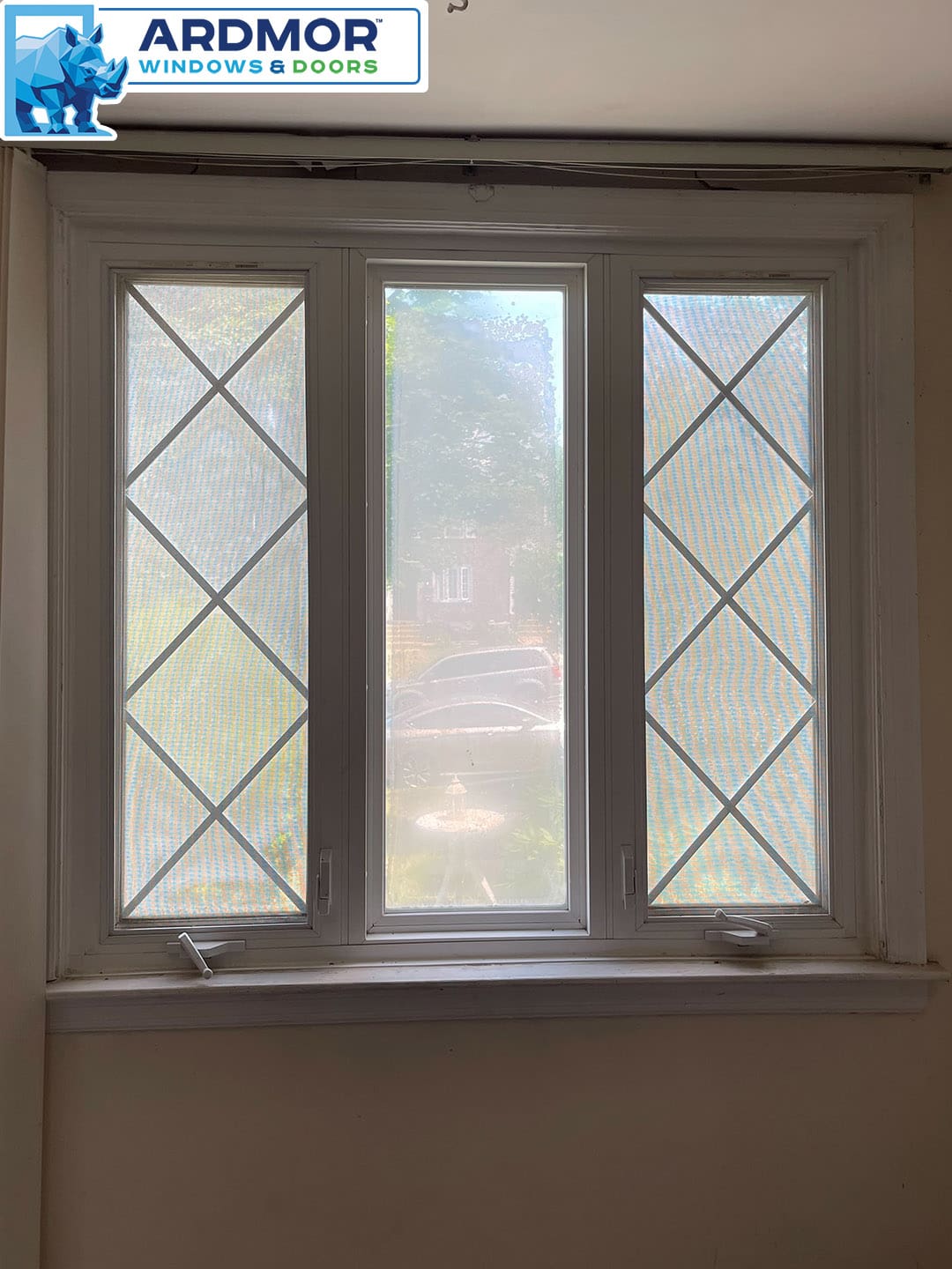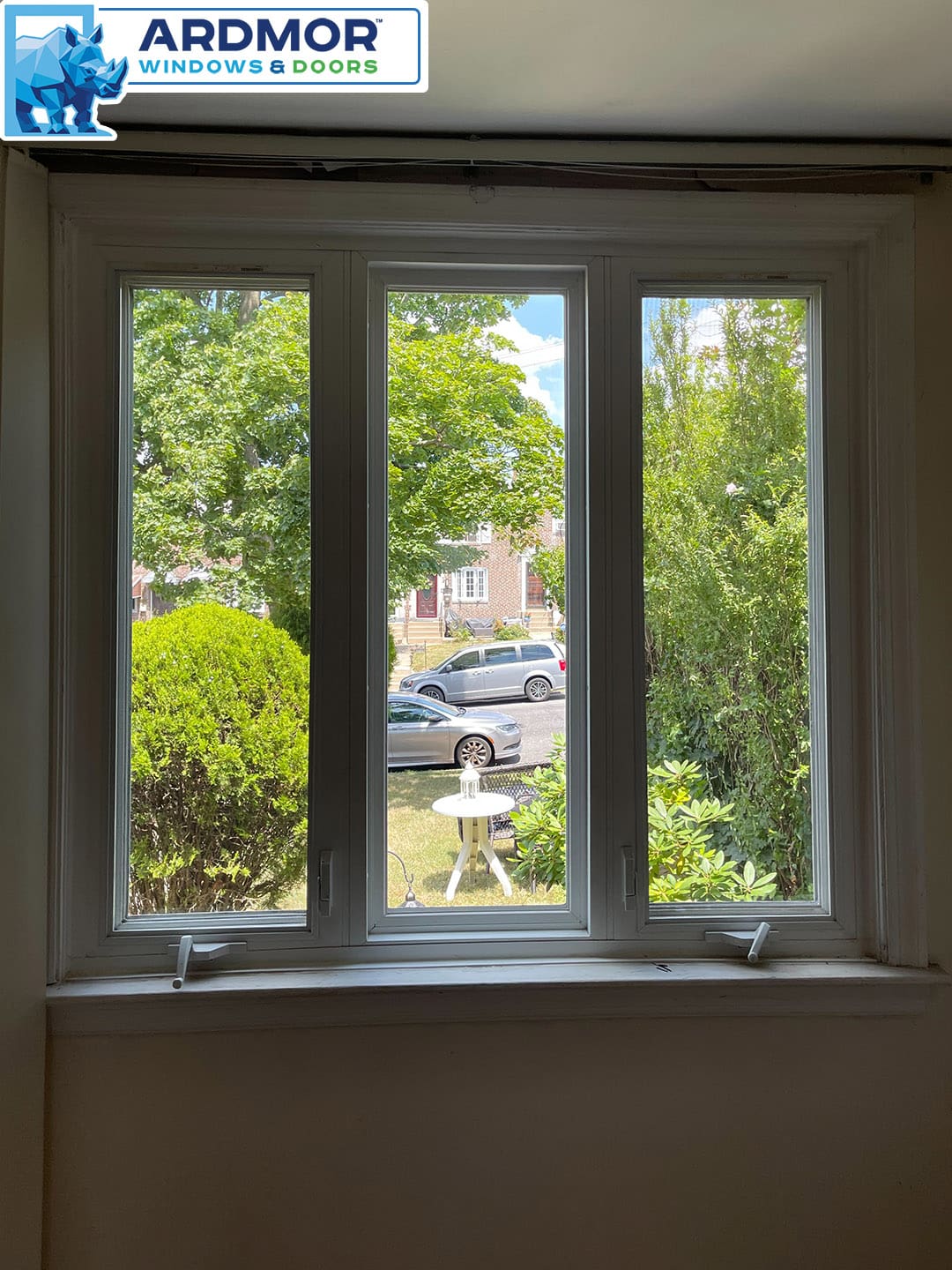 In Philadelphia, Pennsylvania, we replaced multiple glass panels in a vinyl casement window that had become fogged and weathered over time. The new units dramatically improved visibility and natural light, while also giving the window a cleaner, more updated appearance.